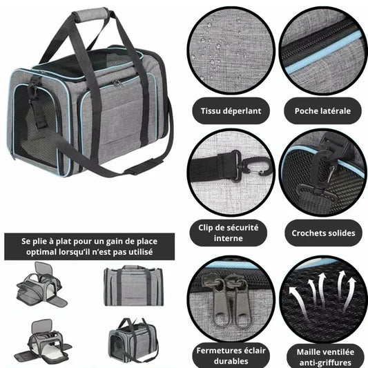 Le sac à main pour chat permet de transporter son chat, tout en conservant un style sobre et soigné. Idéal pour les trajets courts ou les visites, il combine praticité et confort dans un format facile à porter. Une solution élégante pour déplacer son chat en toute tranquillité.